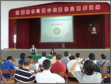 辦理學校:宜蘭縣立冬山國民中學 計畫名稱:教育部補助宜蘭縣102年度校園複合式防災觀摩演練實施計畫 辦理期程:102.10.22(二)下午 | |