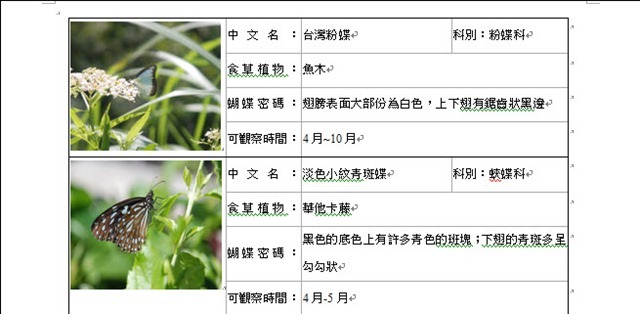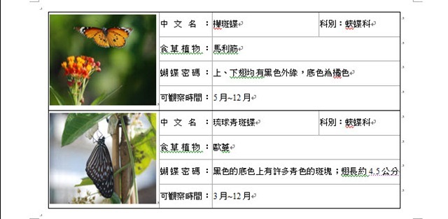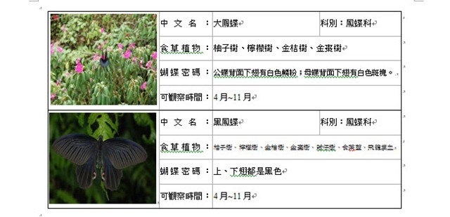 編製蝴蝶生態花園蝴蝶名錄Post author:許淑蘭Post published:2013 年 11 月 11 日Post category:學校環教特色 / 教學與宣導活動 / 校園環境管理 / 生態導覽 許淑蘭宜蘭縣礁溪鄉四結國小環境教育成果網相關內容甲蟲生態意象樹之建置2011 年 11 月 28 日校園處處有綠意2019 年 10 月 17 日生活中處處有環保2018 年 9 月 10 日