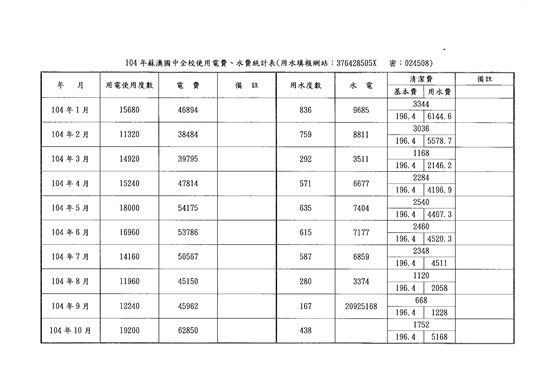 104-1.7蘇澳國中水電支出表Post author:陳盈谷Post published:2015 年 11 月 13 日Post category:未分類104年蘇澳國中水電支出表相關內容104-1.2(5)蘇澳國中環境教育特色2015 年 11 月 10 日106感應照明設備2017 年 11 月 16 日4.辦理活動配合宣導節能減碳相關措施-親職教育暨節能減碳宣導2011 年 12 月 13 日