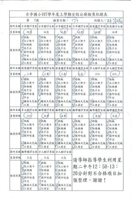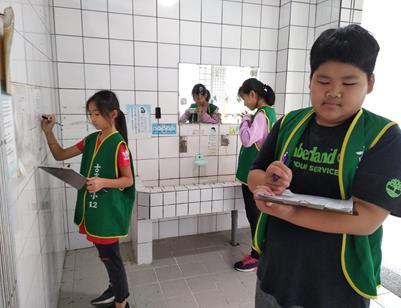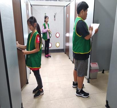 環保綠天使檢查多元館男廁女廁登錄評分情形 | 將檢查結果彙集成表通知各班改善 |