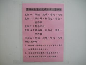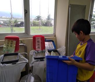 配合壯圍鄉公所清潔隊回收內容,訂定本校每日回收項目 | 設置落葉回收桶,回收各種小型落葉,也可減少垃圾袋的使用量 |