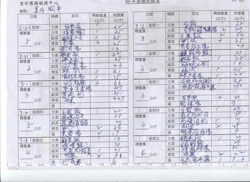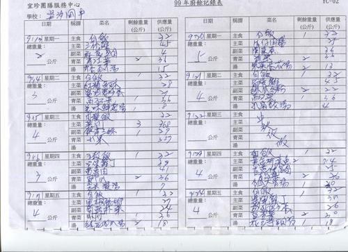 校園環保實務3-6利用廚餘、落葉製作堆肥或有效利用2011 年 12 月 10 日2021 年 3 月 18 日 曾郁芬1036746-落葉堆肥.doc廚工阿姨細心整理廚餘,及午餐秘書確實記錄廚餘回收情形。作者: 曾郁芬座落東北望龜山 好山好水一天堂檢視「曾郁芬」的全部文章