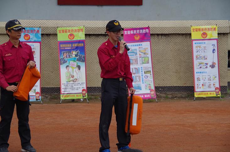 () 邀請宜蘭縣政府消防局礁溪分隊講解防災包之使用方式、緩降機逃生演練、煙霧室逃生演練與消防水車演練等體驗。