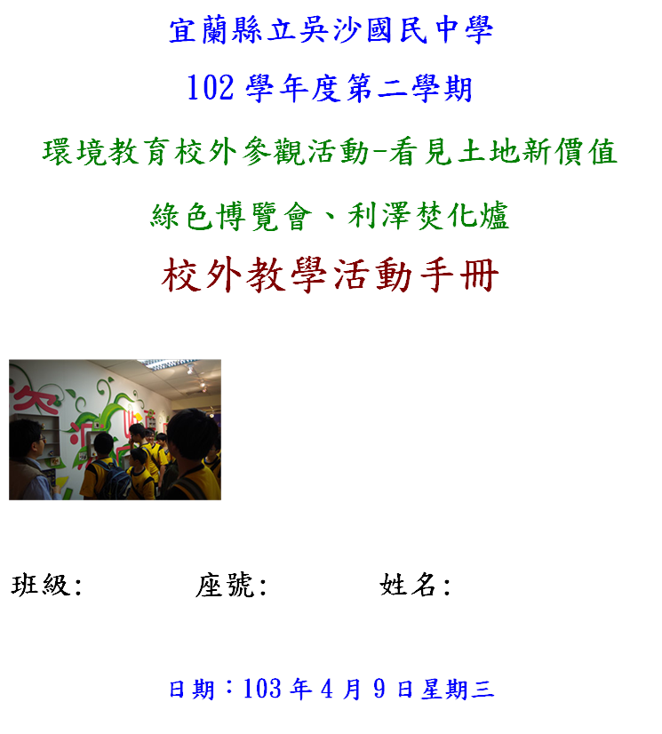吳沙國中103年焚化爐綠博校外教學活動手冊
