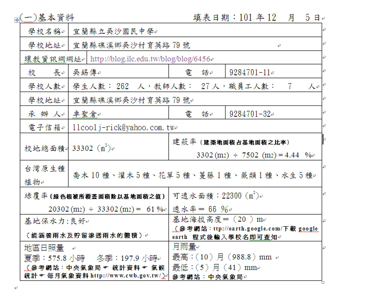 五、學校環境教育特色或創新作為5% | |||
