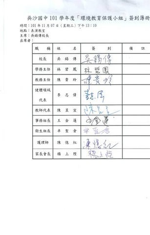 感謝各位同仁能撥空與會,環境教育近年來是社會新興的教育議題,亦是縣政府積極推動工作項目之一。本校長期以來皆對環境教育議題有相當程度的著墨,對於校園的環境清潔,本人亦身體力行,強力督導。另各處室皆用心辦理相關活動,諸如:從防災演習、畢業旅行的科博館、后豐自行車鐵馬行;鄉土實察的頭城老街、草嶺古道鐵馬行與健行、蘭陽博物館之行程、橘之鄉產業參訪等,務必讓環境教育的概念深植於所有師生心中。對於行政團隊的用心,本人深表感謝,此外環境教育線上考評亦請負責處室用心準備,務必讓大家看到吳沙國中推展環境教育的用心。