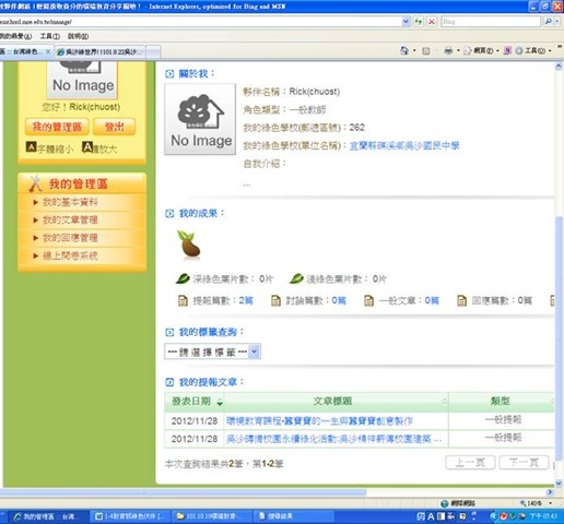 1. 節能減碳:各項節能減碳措施依101年計畫規定。另關於廢電池回收部分,於每月月底由各班負責同學交至衛生組進行統一回收。