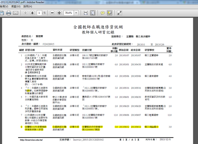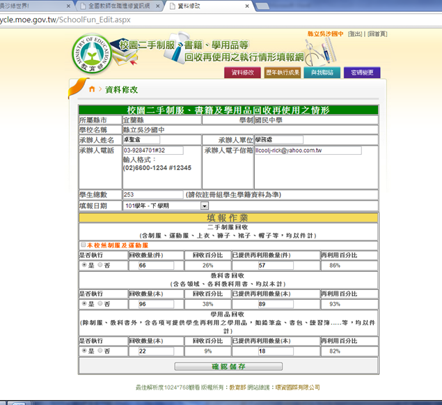 承辦人:葉雅菁 學務主任:林碧鳳 校長:吳錫傳