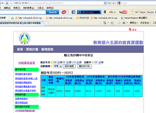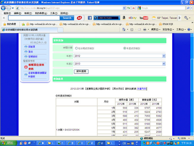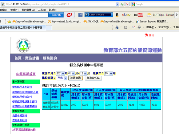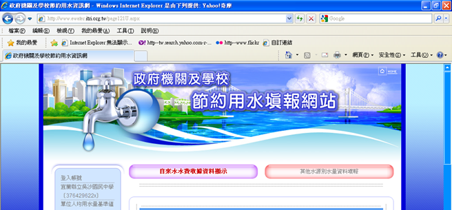配合經濟部水利署「加強政府機關及學校節約用水措施網路填報系統」