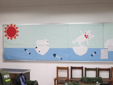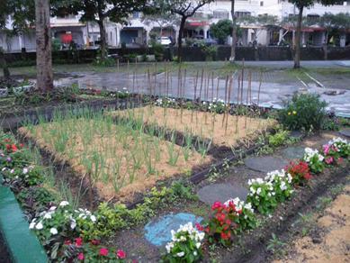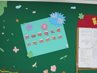 J說明:將一盆盆的樹苗種在新校舍的土坡