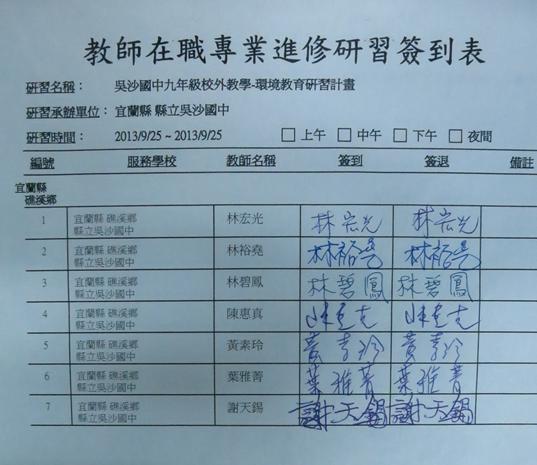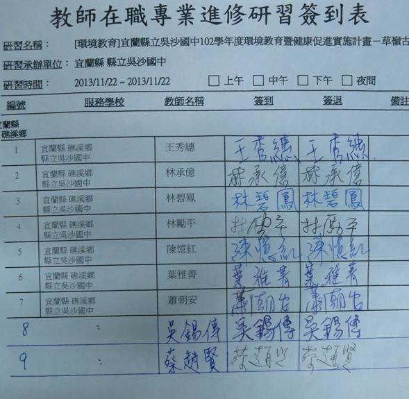 宜蘭縣立吳沙國中102學年度環境教育暨健康促進研習成果