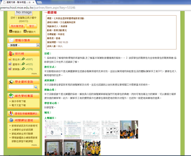 - 本校102學年度環境教育實施計畫。