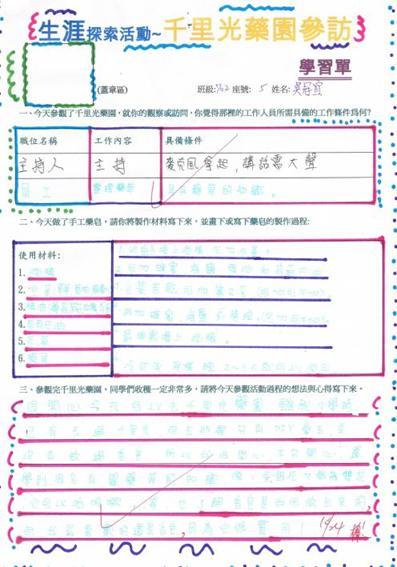 承辦人:葉雅菁 學務主任:林碧鳳 校長:吳錫傳