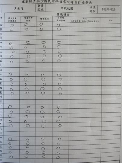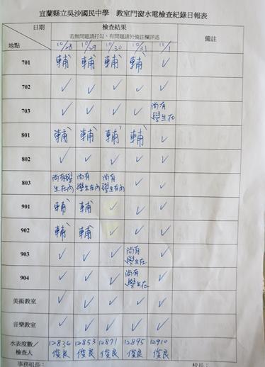 J說明:每日放學後檢查電器開關與狀況,並於每日放學查看水表度數並記錄。 | |
