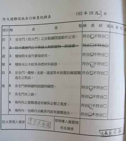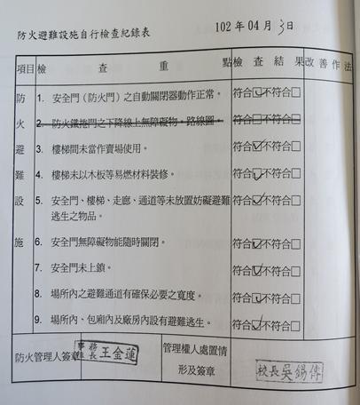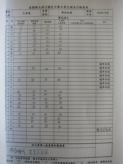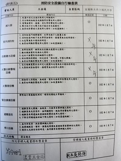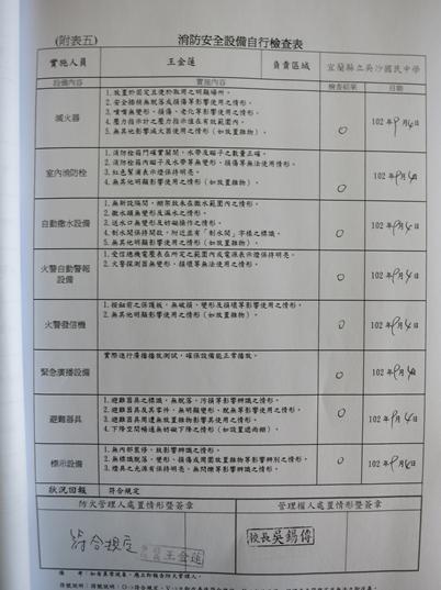 吳沙國民中學 定期環境稽核-消防、用火設備定期檢查 | |