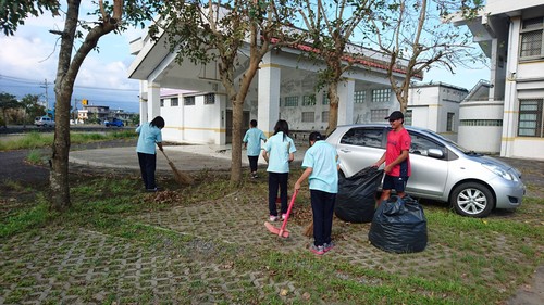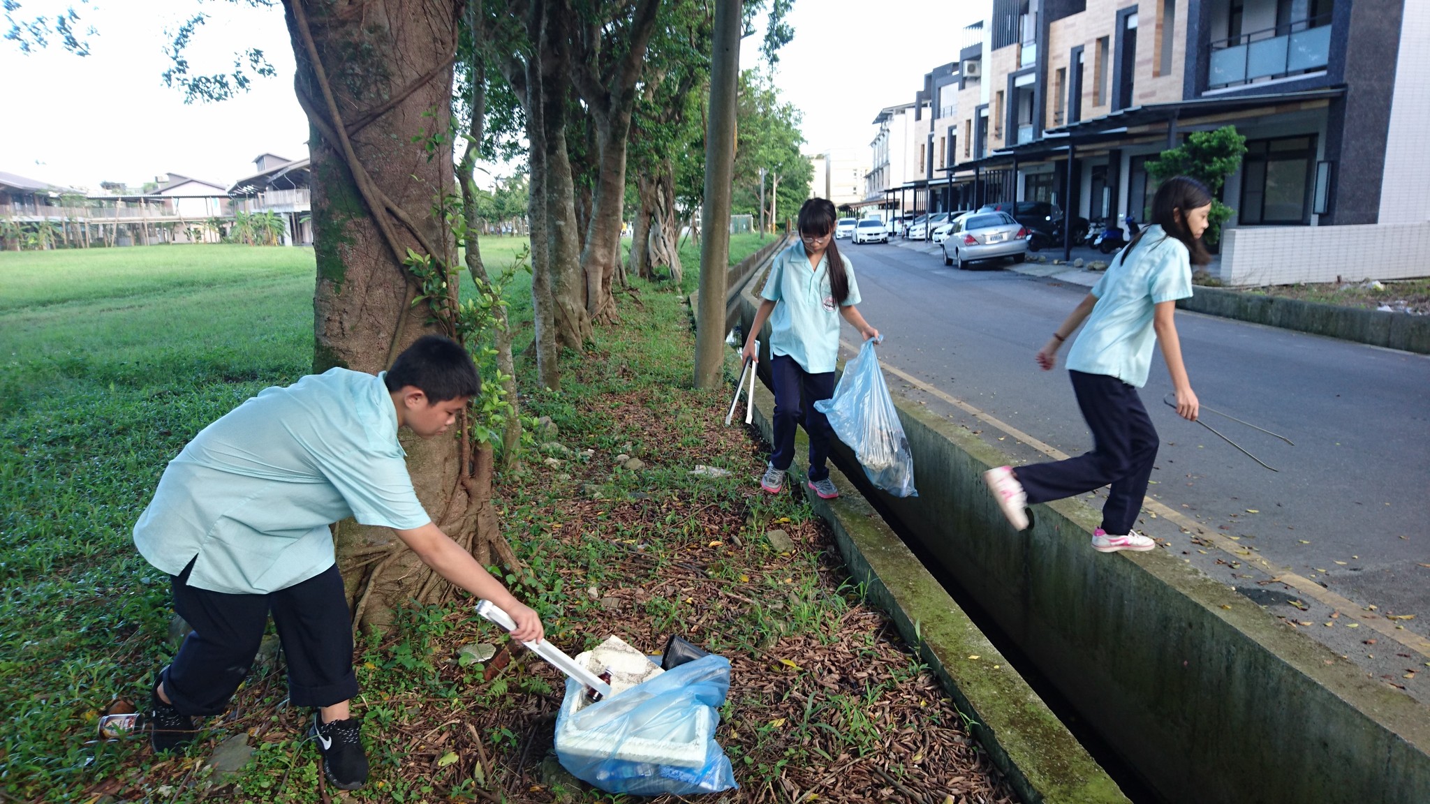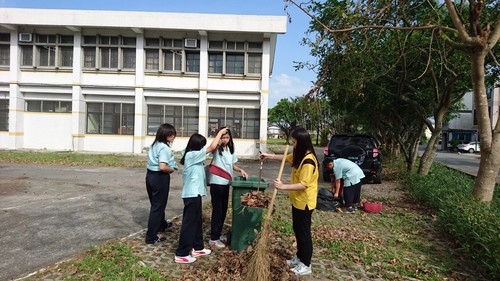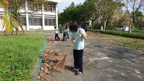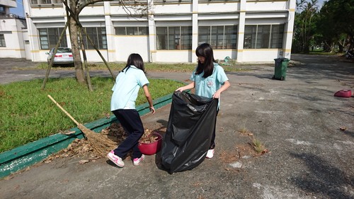 六、 照片說明:開學至今,學習服務社同學已進行四次校園清潔工作,他們針對校園內較容易被忽略的區域作整理,默默為環境清潔貢獻一份心力。