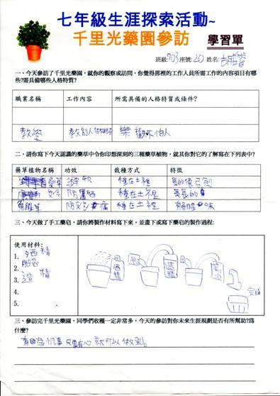 吳沙國民中學103學年度生涯發展暨環境教育活動照片