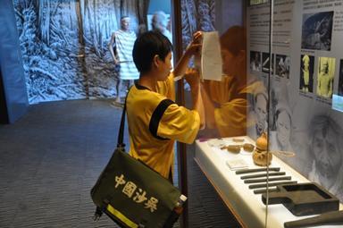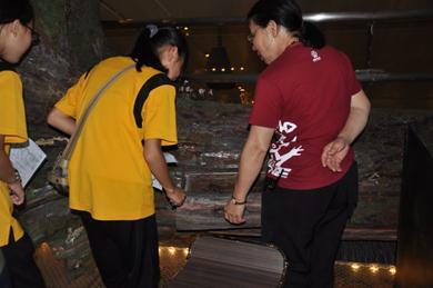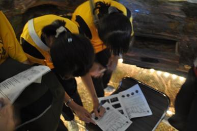 照片說明:館方人員為師生進行解說 | 照片說明:認真撰寫學習單 | |||