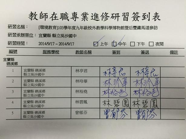 宜蘭縣立吳沙國中教師參訪科博館研習計畫