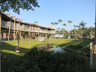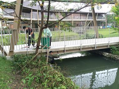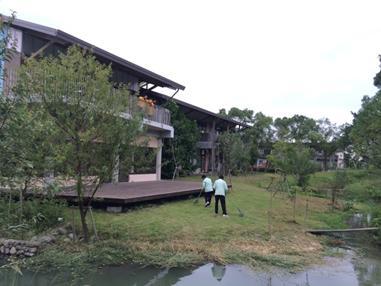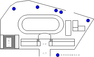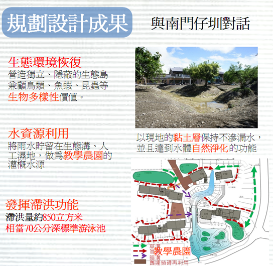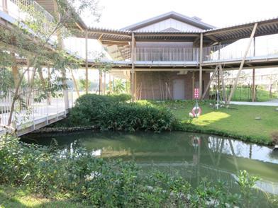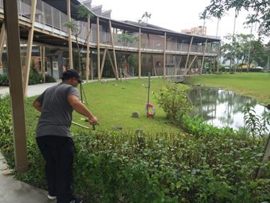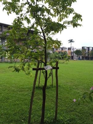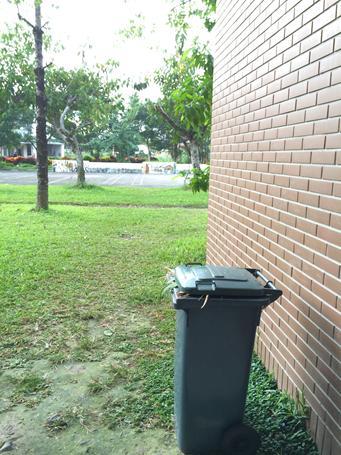 受校舍興建施工影響下,96年所設置之五處位置現為工地施工處與機具堆放位置,另落葉桶僅剩一只可使用,因應工程現況的情形下,劃設一處綠地區域作為落葉堆放處,如下圖: