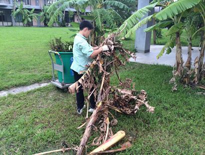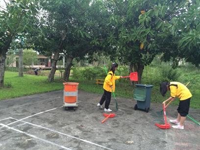 推動校園落葉回收再利用。將校園落葉清掃後,集中收集後,置於落葉堆肥箱轉換成有機土,之後可作為栽培花卉及樹木之肥料,對垃圾減量大有幫助,兼具校園養分能量循環功能,以達環境永續發展理想。