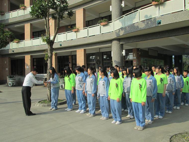 校長於朝會時公開表揚前一週生活競賽得獎之班級