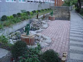 學校簡介 本校為宜蘭市東區唯一小學,屬新興社區,地小人稠、校園內外操場常被喻「戈壁沙漠」和「黃土高原」,塵土飛揚,常為社區垢病,場內雜草難生、未被草皮,不僅景觀不雅,甚至影響師生及社區民眾健康,校園四周設有水泥圍牆,高約一米半,四周較為封閉,社區居民出入學校不甚方便。又校園內鋪設水泥地面,透水性不佳,每逢下雨,空地常積水,一片「水鄉澤國」(如附圖),嚴重影響學童上下學安全及活動。況且學生活動區域均在水泥地上,硬舖面甚多,不但危險,活動更是不便。 | |||||||||||||||||