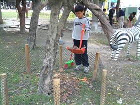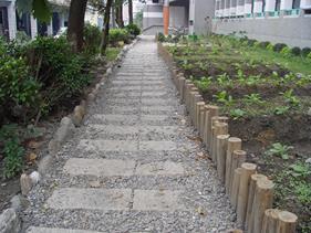 落葉堆肥可減少垃圾量,打掃時也很方便,直接把落葉倒進堆肥區,落葉可製造自然的有機肥,可栽種蔬菜及提供校園植物養份,一舉數得 (文字說明+照片) |