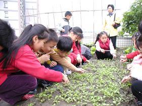 黎明國小希望培養學生愛護校園、尊重生命、積極主動關懷社會及生活週遭環境與自然生態的觀念。 透過身體力行的教學活動,提昇學生學習興趣,落實生態環保觀念。 | 老師的話 ※教學農園部份 經由親手栽種、觀察討論等過程,培養學生實際操作能力,及觀察記錄的能力,透過分組發表、經驗分享,開發學生潛能,學生在實際操作過程中,充滿期待與喜悅,使課程與學習變得非常有趣。