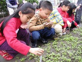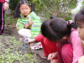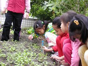 我們親手栽種油菜,觀察油菜的生長歷程變化,從中了解種子發芽到成長的過程,並知道作物要長得好需要水分、空氣、土壤、陽光和養份等,看到自己栽種的油菜長高了,我們都非常高興。