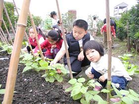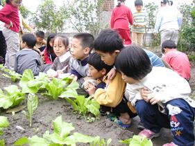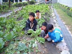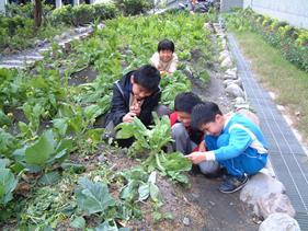 教學農園的作物長高了,我們的辛苦總算有了收穫,很棒哦! |