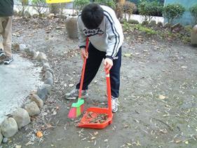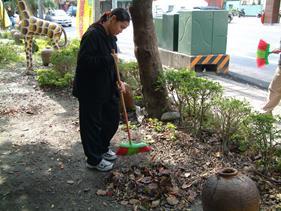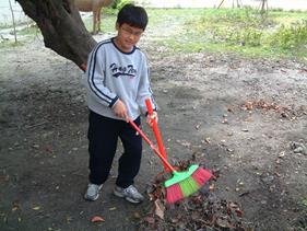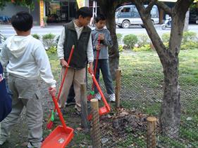 利用打掃公共區域時,收集校內各種樹木的落葉,集中至堆肥場處理。