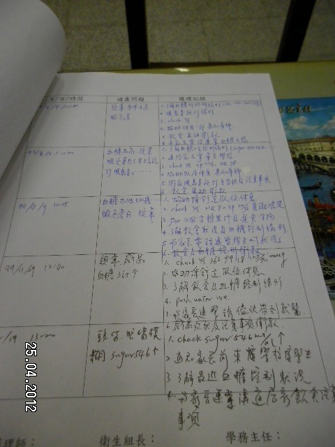 1.學生傷病時由陪同同學協助填寫「學生臨時傷病記錄單」後,按先後次序接受照護,但傷病較輕者,應讓急病或傷重者先行接受照護,留置非緊急傷病者觀察或休養,以不超過一小時為原則。