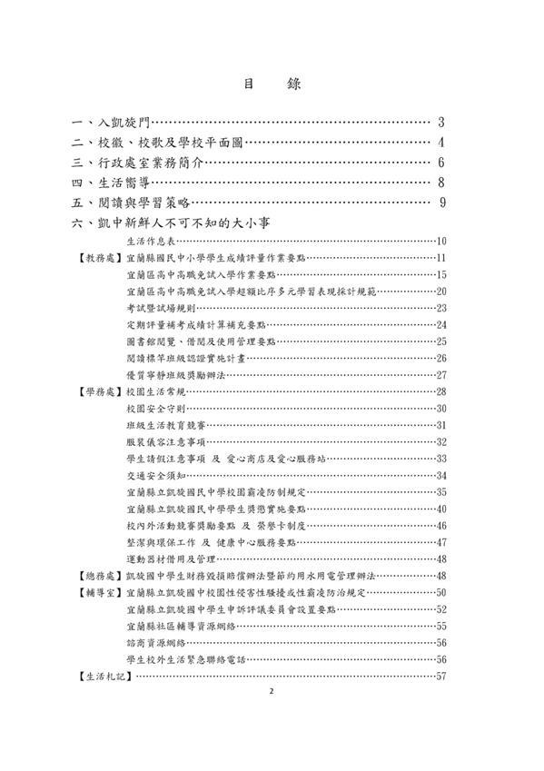 訂定各項獎懲辦法,如:閱讀標竿班級、優質寧靜班級、生活教育競賽…等等,讓好的行為能得到應有的獎勵,而不好的能有所警惕。並在凱中的孩子在入學的第一天皆發放凱中學生守則,以供參考。