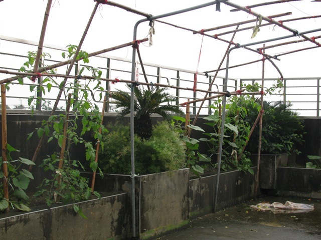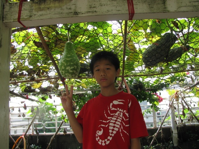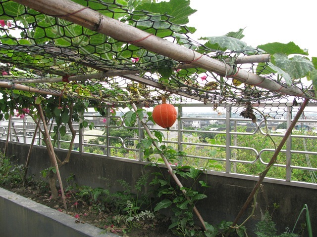 利用校舍頂樓閒置空間架設瓜棚,並請學生負責照顧,營造多樣性校園生態空間