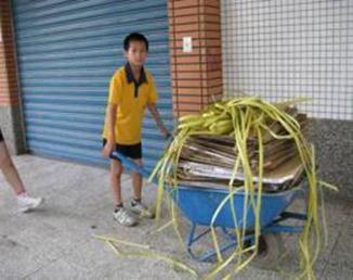 學生協助社區資源回收隊,推動環保服務工作