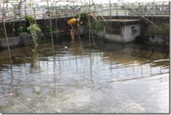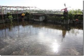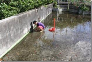 下雨後的積水容器… 學生清潔盆栽底部積水 |