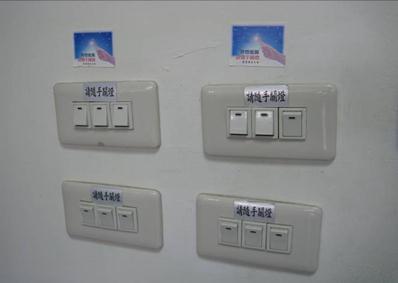 ※水龍頭設置省水裝置及感應裝置,並貼上省水教育標籤。