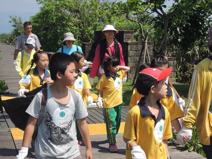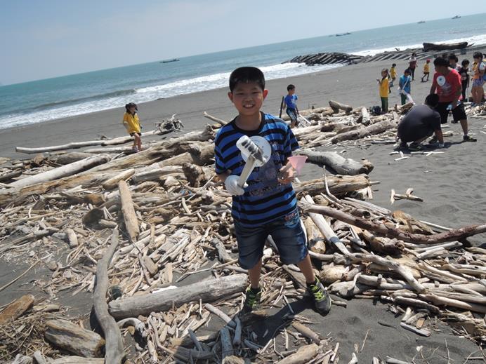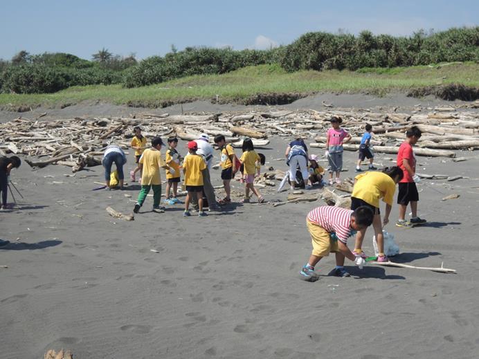 原本滿佈漂流木及垃圾的海灘經過全校師生努力還原了海灘應有的面貌 |