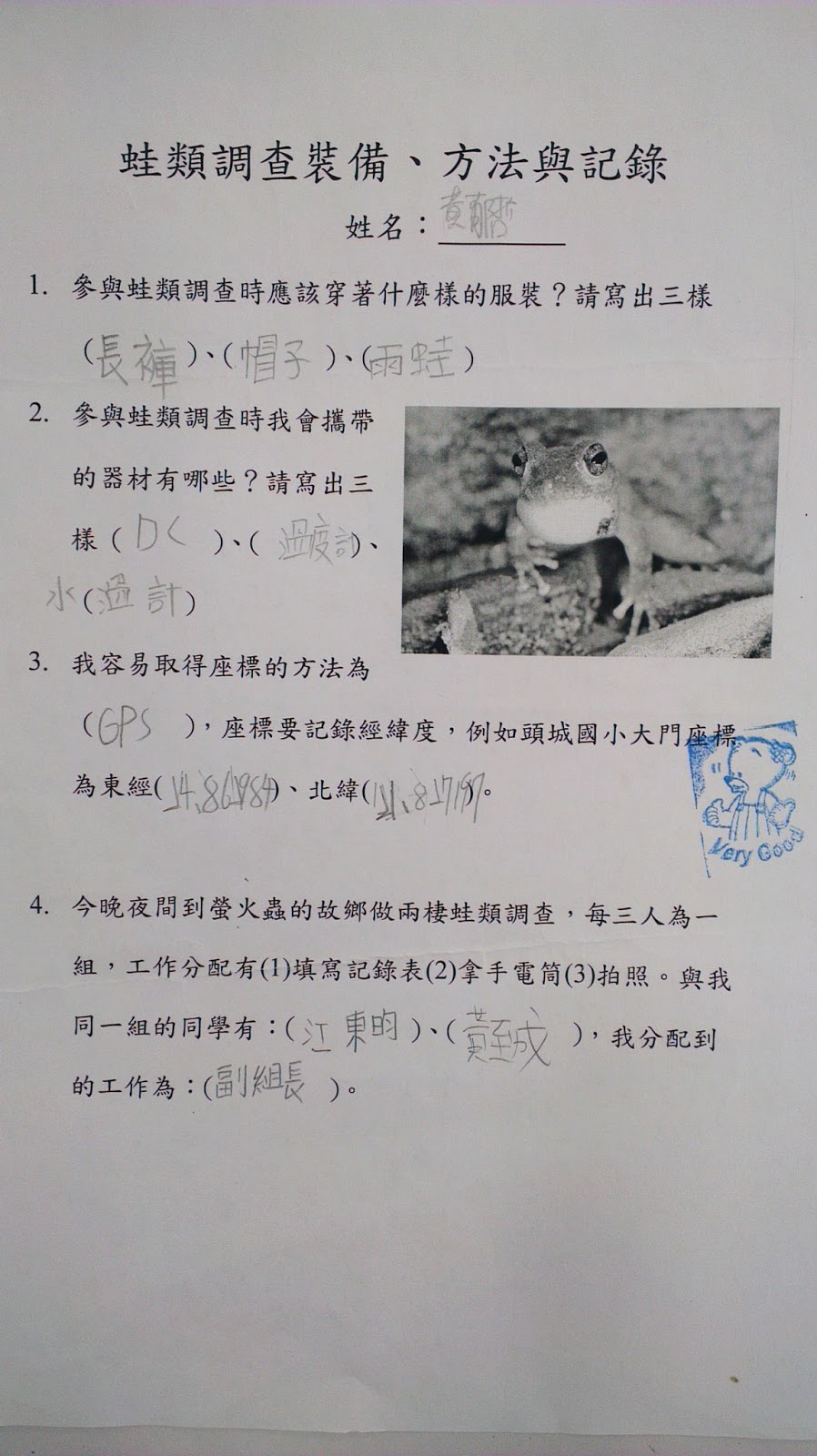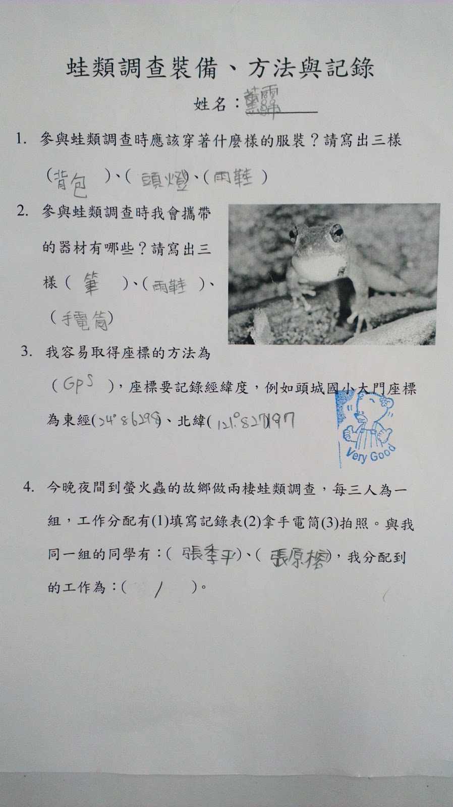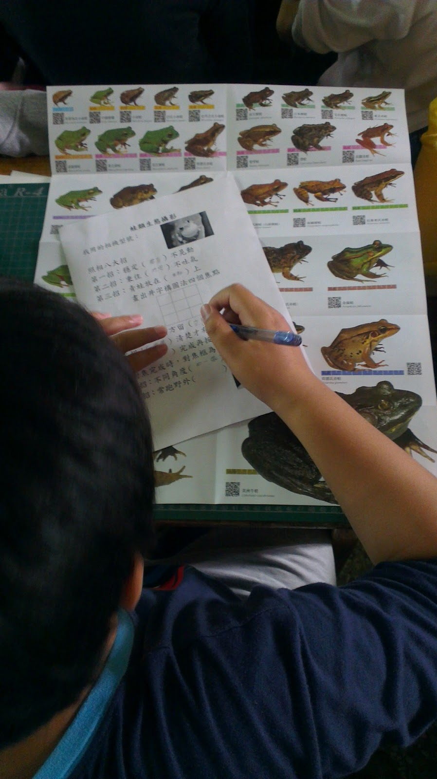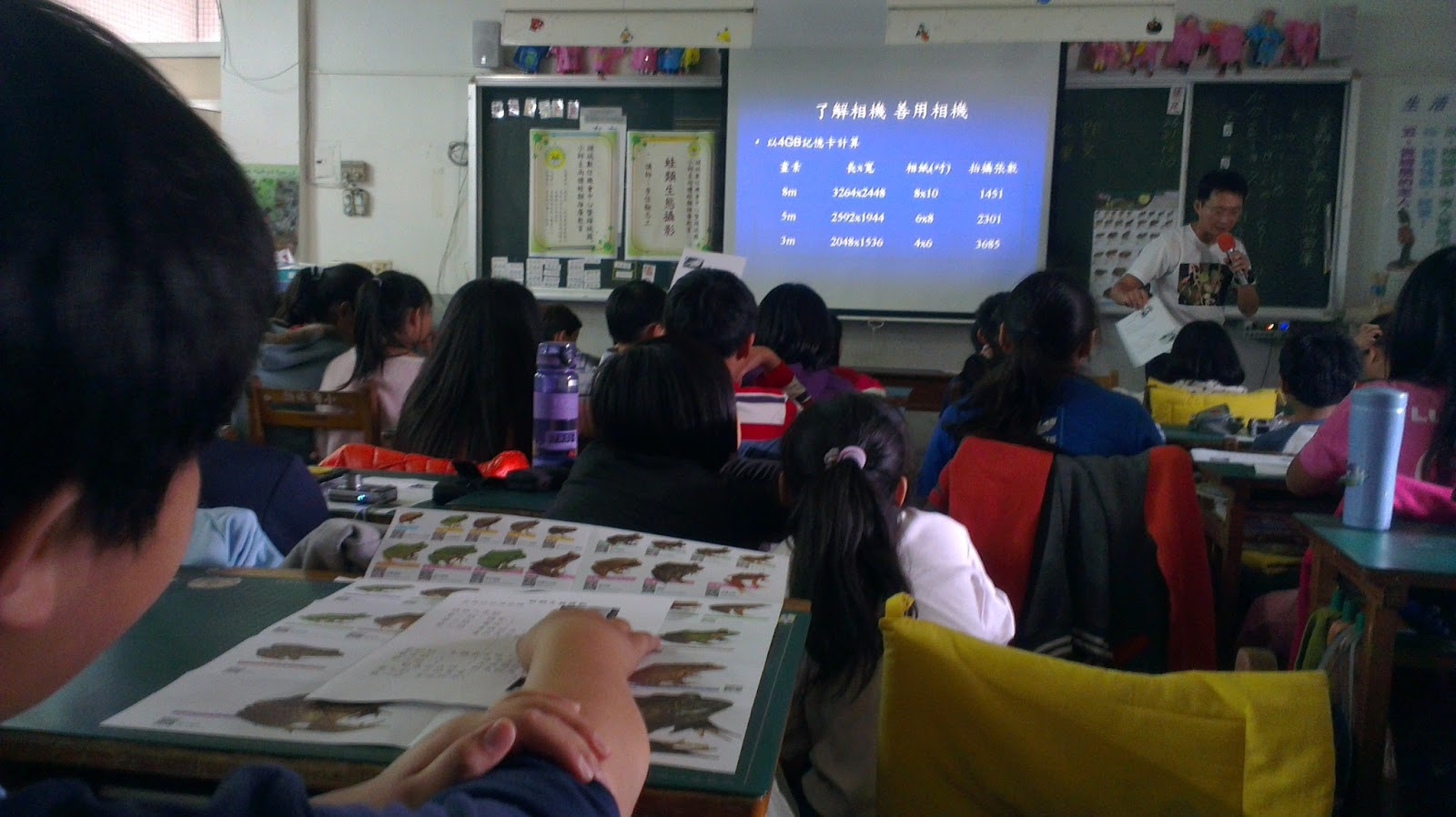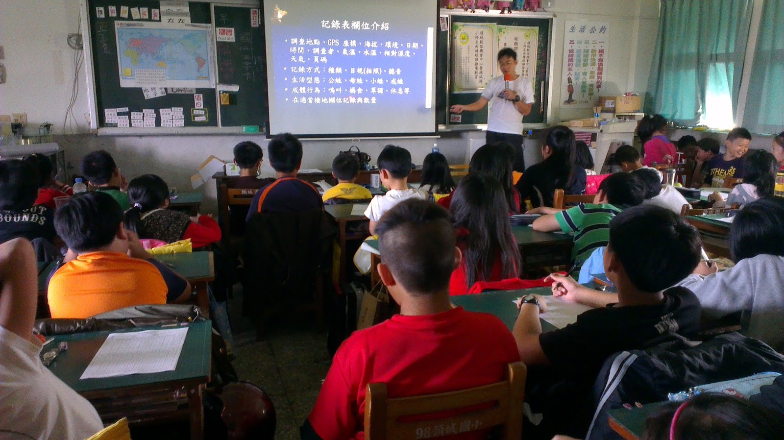 延續上周二的蛙類保育推廣課程,今天是第三場,仍然請到東華大學兩棲保育志工李佳翰老師來為我們師生們上課,這堂課一樣在五年忠班舉行,主題是教我們如何進行調查的工作,當然,過程中,要學習的內容不算簡單,要學會認識GPS座標,如何利用工具記錄水氣溫、濕度等等,十分精彩豐富,而這些知識不是單單只有坐在課堂上聽聽就會的。重點還是要走出戶外,實察運用才行,所以,上完這堂課後,我們就開始期待晚上到大溪水源保護區的夜間觀察。
