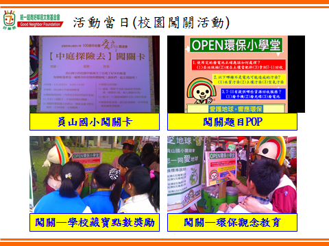 於校慶園遊會時,結合統一超商蒞校設攤,進行闖關活動,推動環境教育。