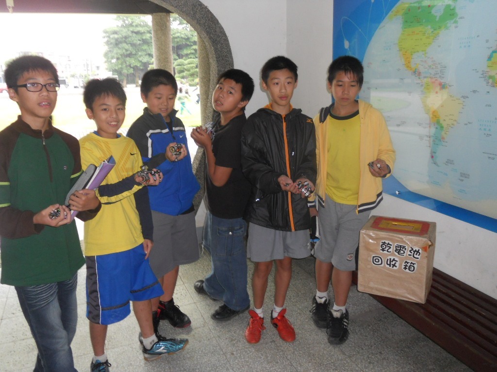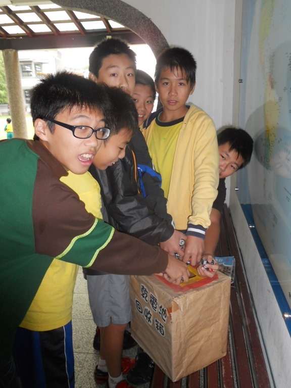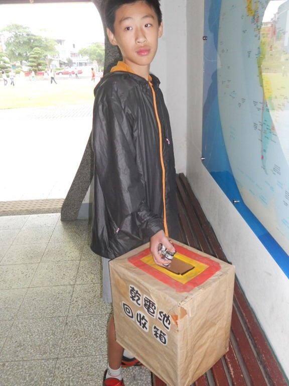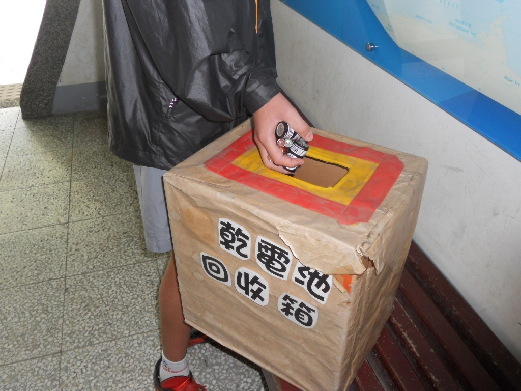 本校在辦公室前走廊設置廢電池回收筒,鼓勵學生參與回收工作