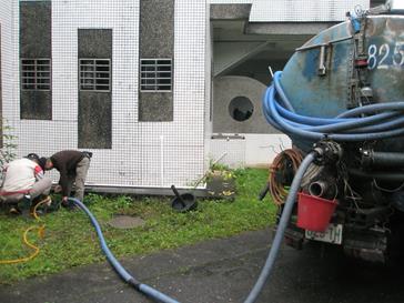 化糞池抽除2013 年 11 月 25 日n98373宜蘭縣員山國民小學活動照片「化糞池抽除」執行成果活動說明:抽除地點—凌雲樓活動說明:架設管線活動說明:進行抽除作業活動說明:進行抽除作業活動說明:水肥車最後整理工作活動說明:本校逐棟每年進行化糞池抽除。