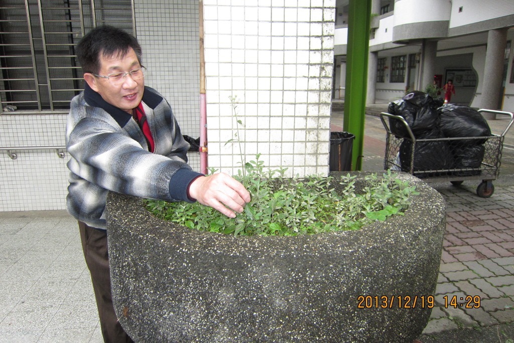職工定期照顧盆栽、陽台,進行校園綠美化