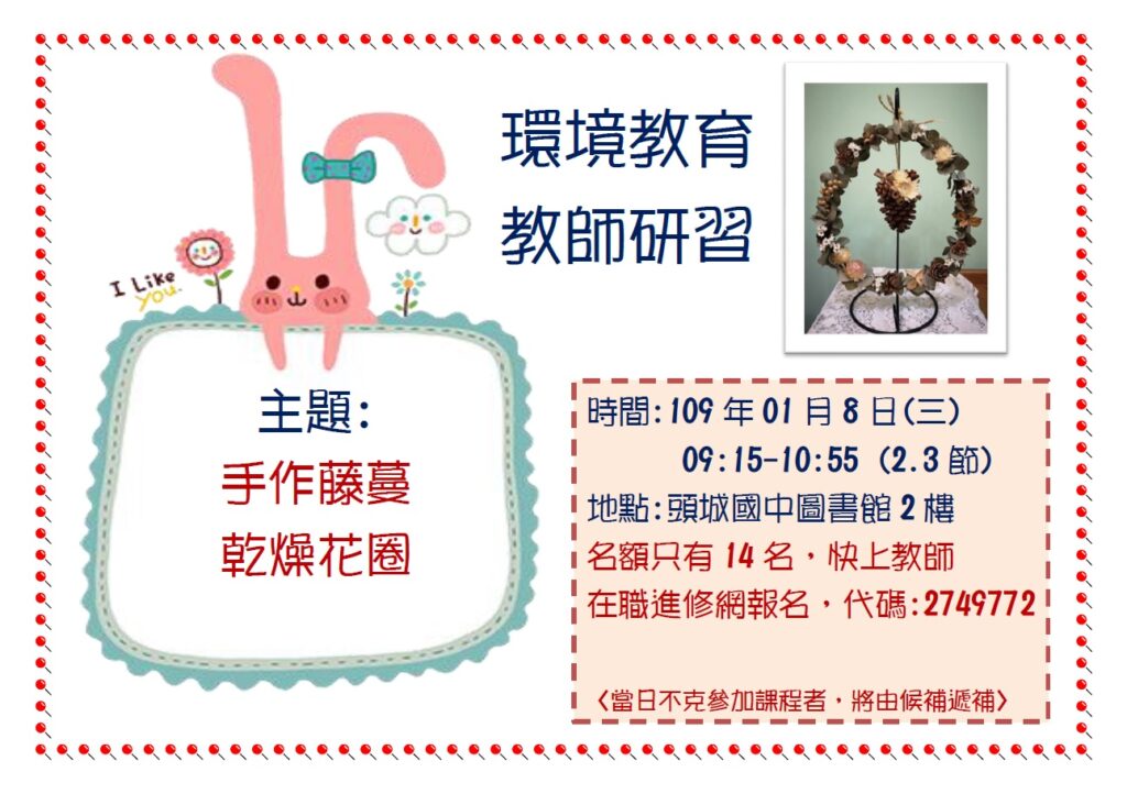 109教學與宣導活動:遇見園藝健康療癒的盛放-手作藤蔓乾燥花圈
