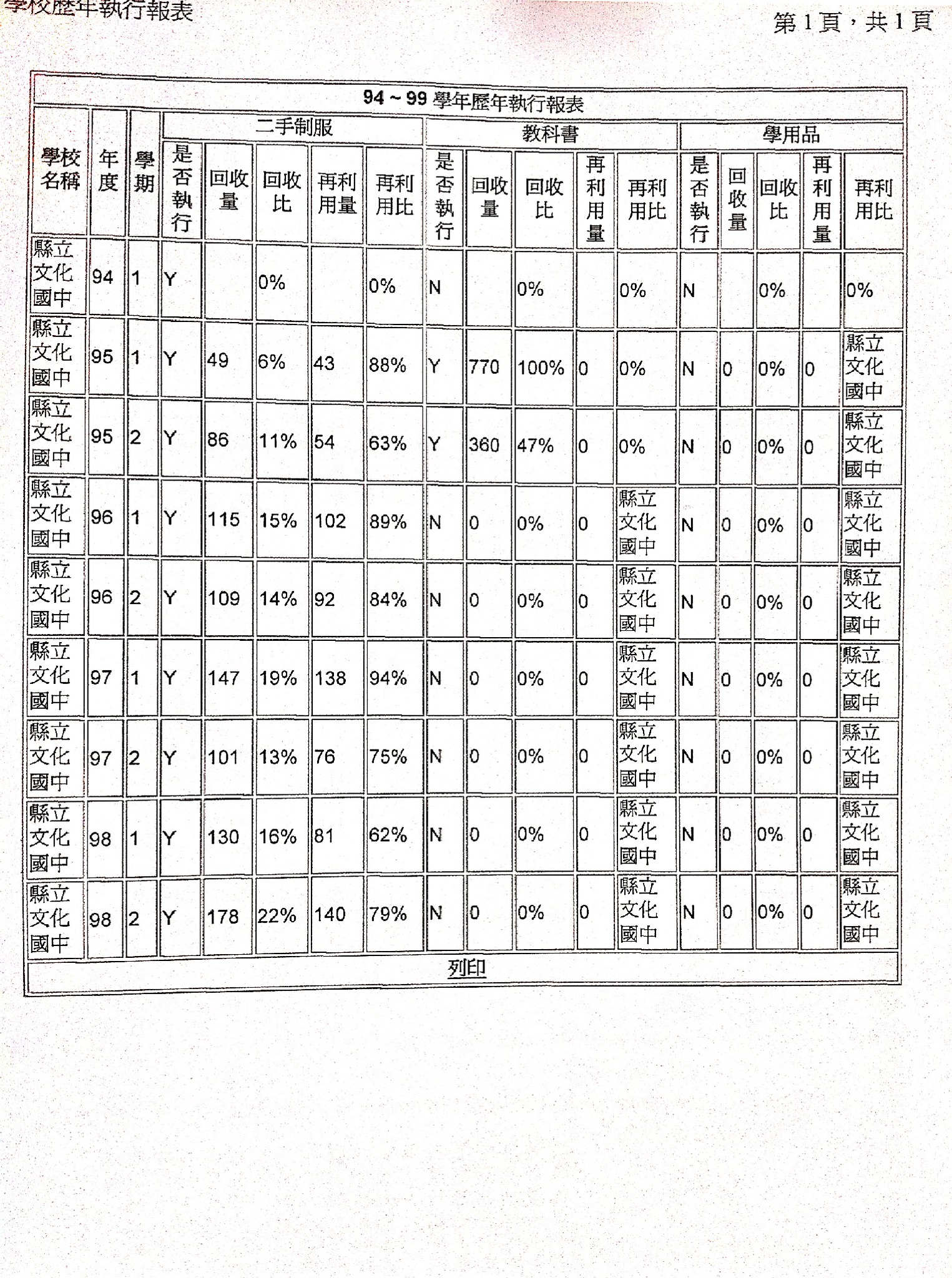 94-99本校上網填報二手衣、教科書及學用品再利用報表