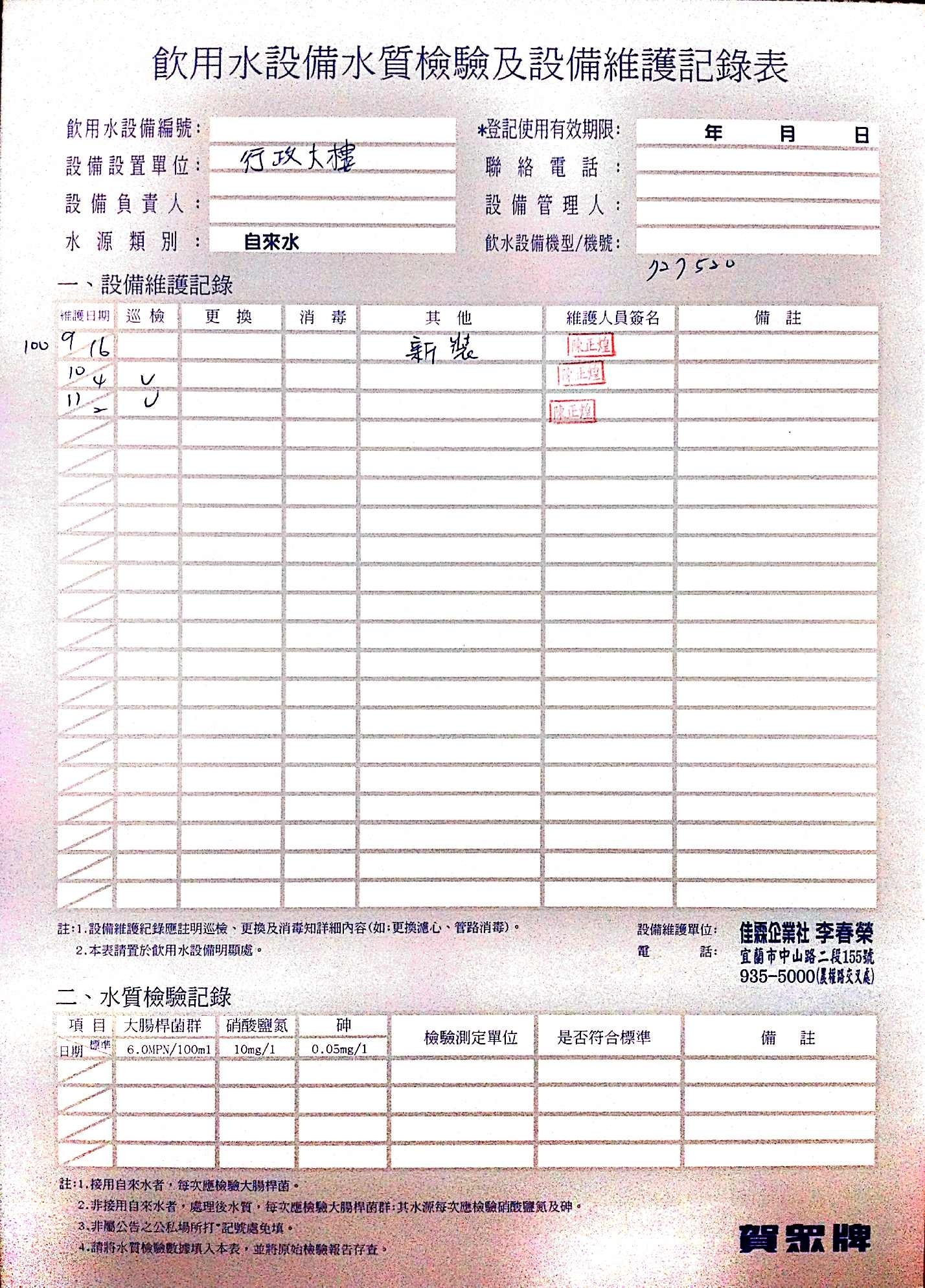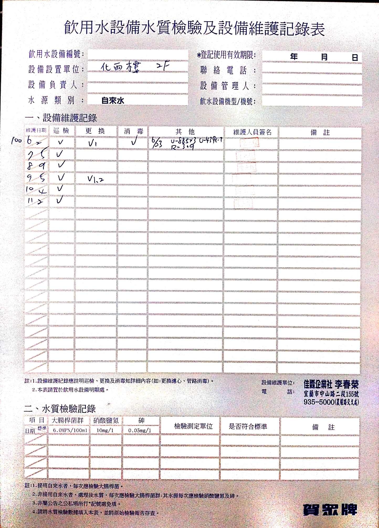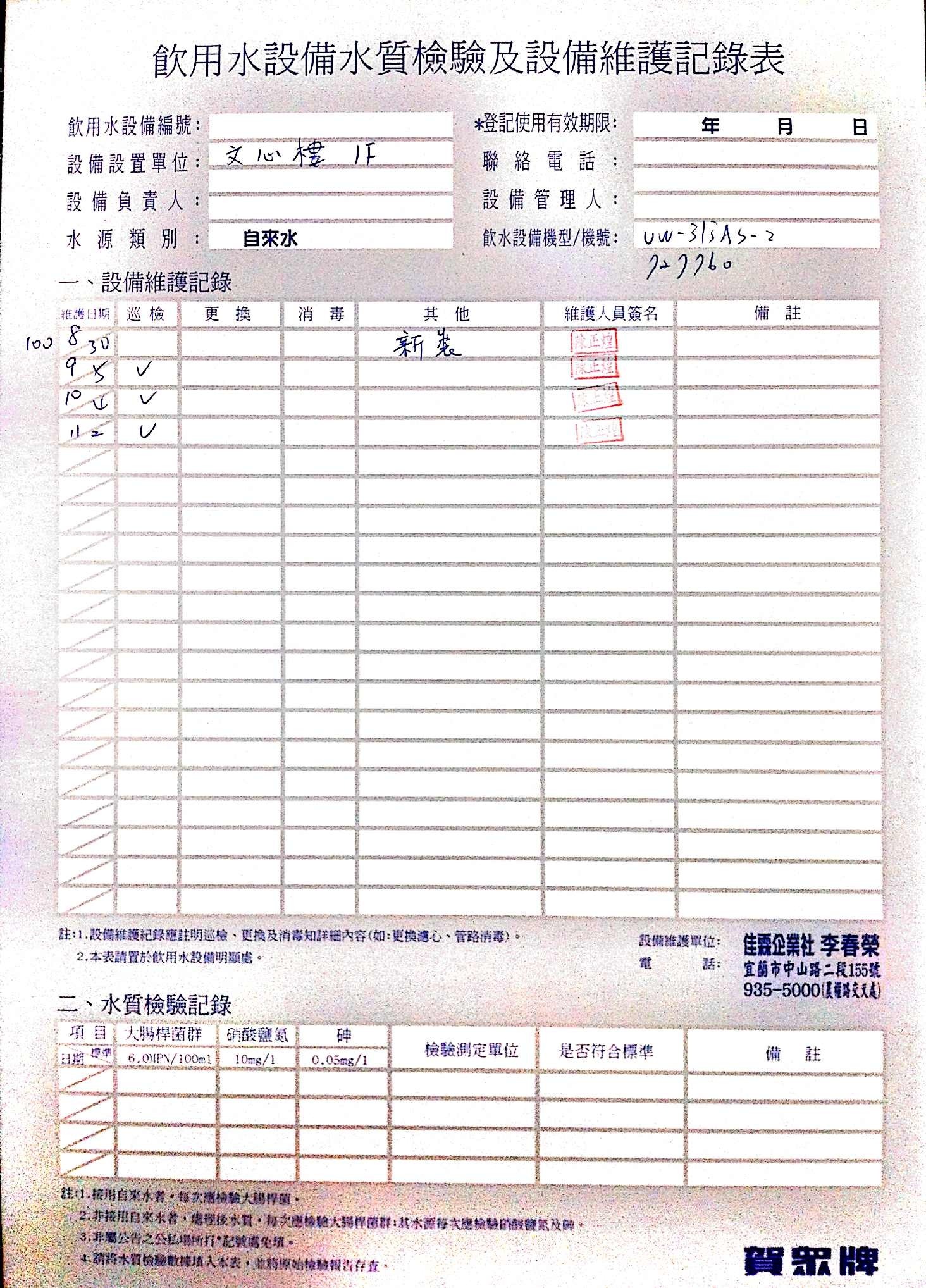 每個月校內飲水機設備皆有專人進行保養、維護及管理