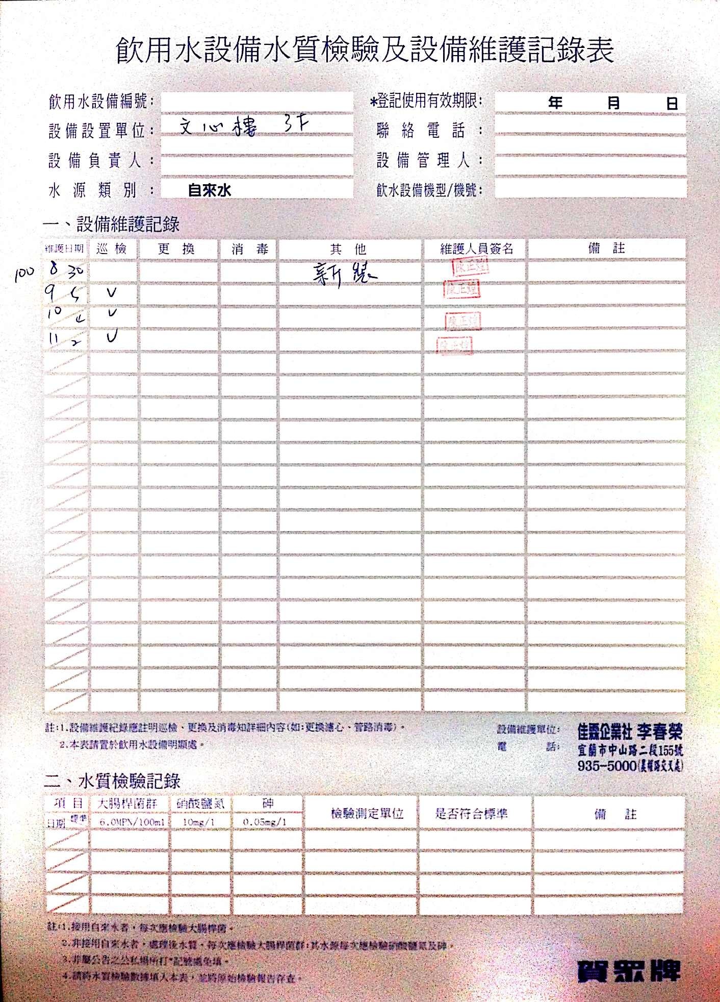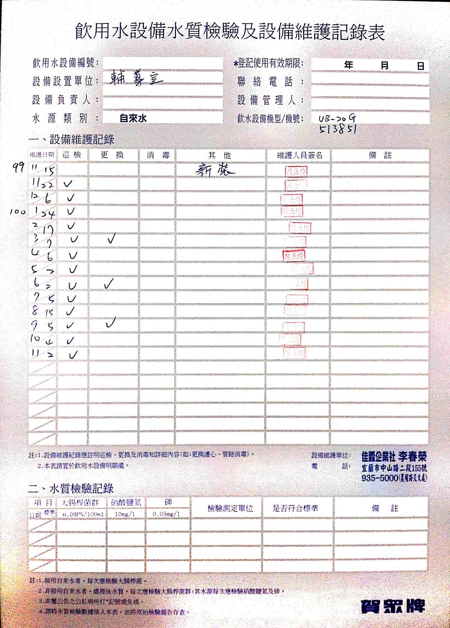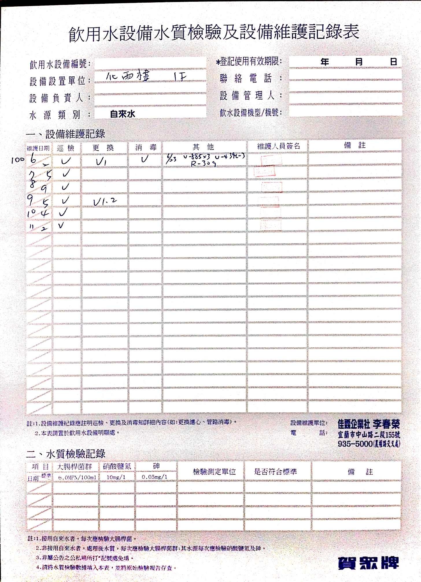 每個月校內飲水機設備皆有專人進行保養、維護及管理