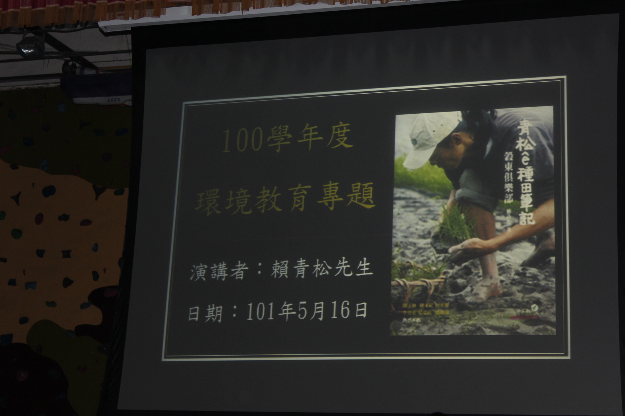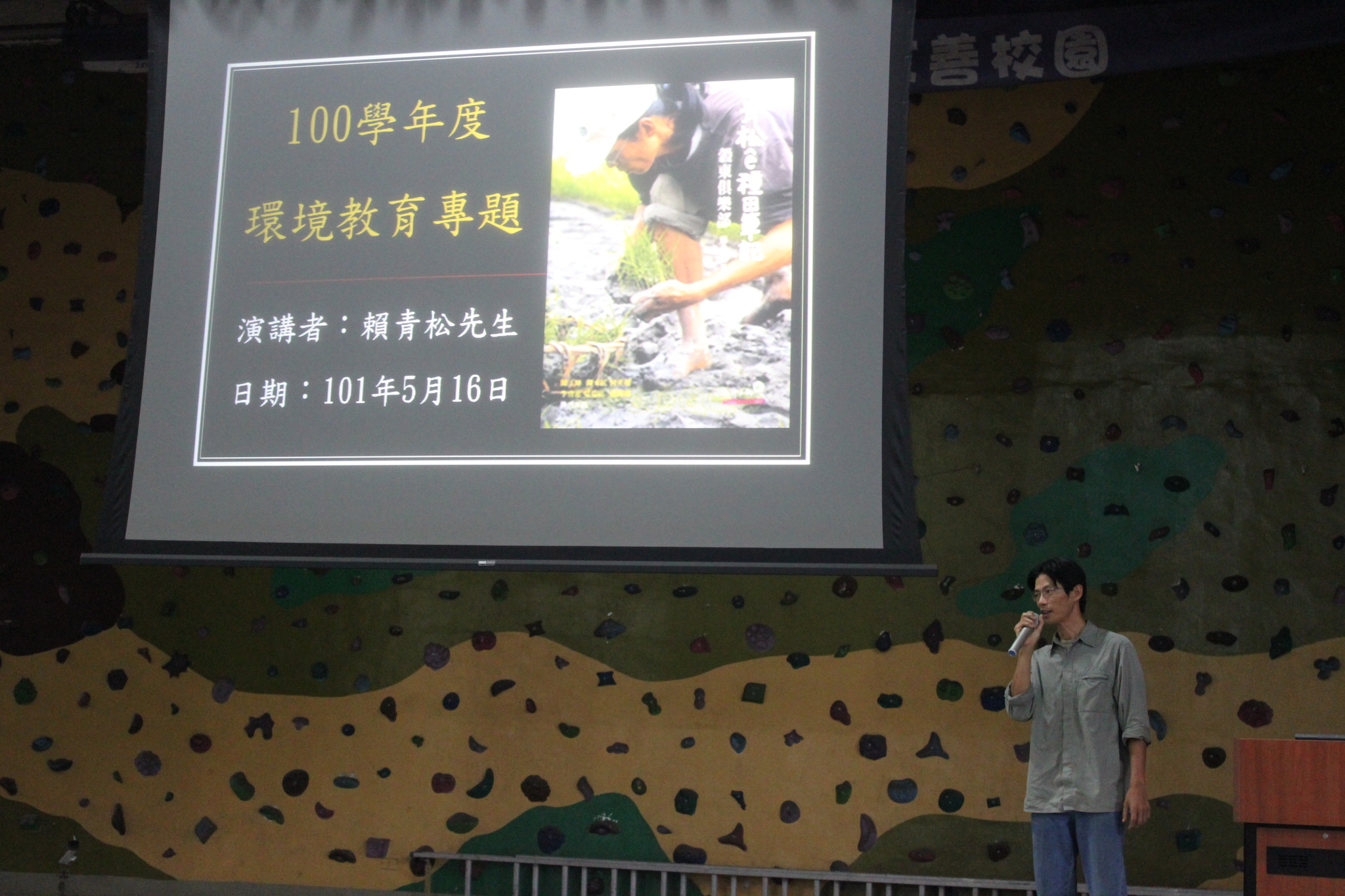 發佈於 26 11 月 201218 3 月 2021 作者: u1102219101._二.4._賴清松先生到校演講照片說明:賴清松先生推動生態保育、環境教育不遺餘力,且時常有個人獨特的見解觀念,因此邀請賴先生致本校演講,除了敘述多年從事生態環境保育的心路歷程以外,更帶給師生許多新穎的觀念。