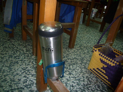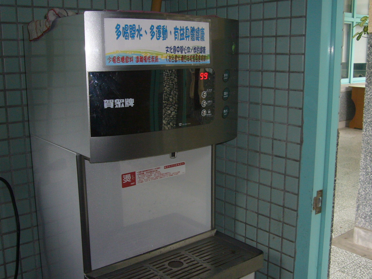 照片說明:設置飲水機、鼓勵攜帶保溫杯,並於桌腳設置杯架,減少垃圾食